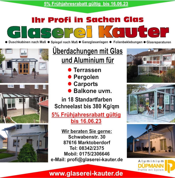 !!!!!!! NEU BEI UNS !!!!!!! Terrassenüberdachungen aus AluminiumSie möchten Ihre Gartenmöbel auf der Terasse stehen lassen? Wir haben die Lösung!!!!Wir planen und montieren für Ihre Terrasse oder Ihren Balkon eine komplette Überdachung aus Aluminium, damit Ihre Möbel im Trockenen stehen.DieseistinverschiedenenFarbenausführbar.